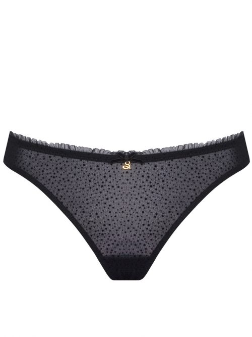 Majtki w modelu C300 ,string ,wykonane z delikatnego ,ozdobnego materiału ozdobione delikatną falbanką na obwodzie.Niezwykle kokieteryjne.